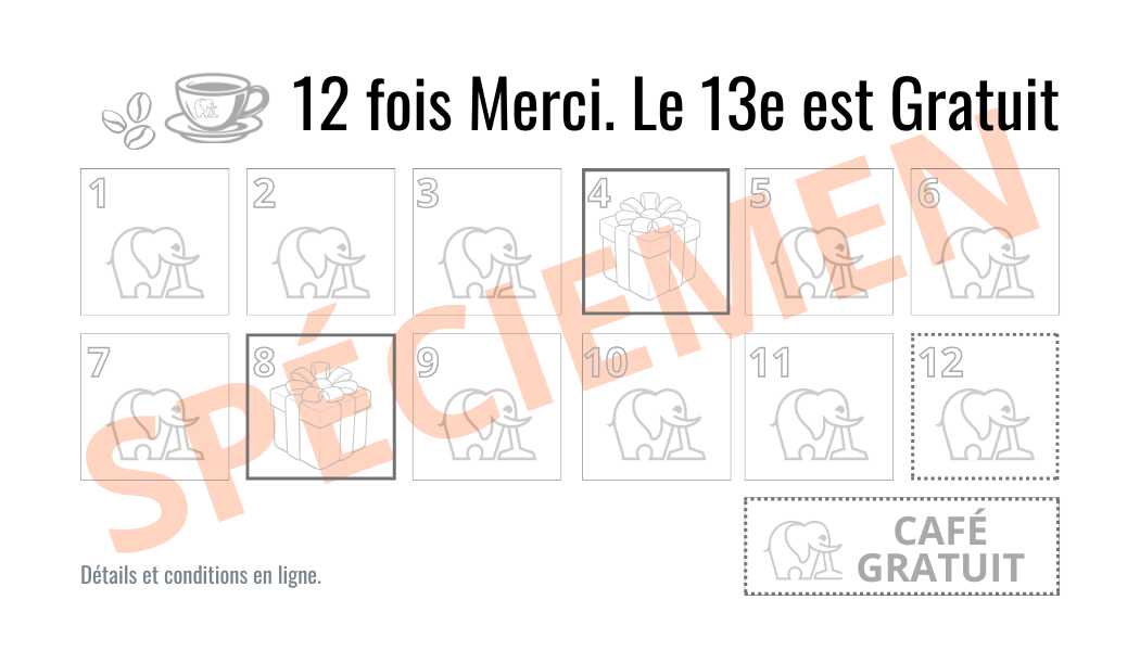 C'est simple! Chaque achat de cafe, presentez votre carte fidelite pour obtenir votre tampon.